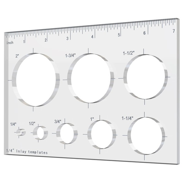 - [What you Get] 1 Pack Circle Inlay Templates, Including Circle Woodworking 8 Sizes: 1/4"、1/2"、3/4"、 1"、 1-1/4"、 2"、 1-3/4" 、1-1/2", Easily Help You Cut the Perfect Router Jig Template.