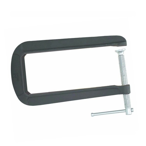 8 In. Extra Deep C-Clamp Precision machined screw assembly Cast iron construction for added strength and durability Powder coat finish Sliding T-Bar handles 2-3/4" jaw opening with 8-1/2" throat depth. Sold from bulk stock. 100's Of Tools, Click **HERE** To Shop Our Store