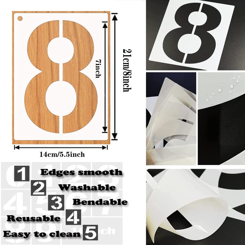 - 8 inch large number stencil set: the number painting stencils set includes 0 to 9 digital painting templates, a total of 10 pieces. Each stencil measures 8 inches and each number measures 7 inches high and four size options to meet a variety of daily uses.