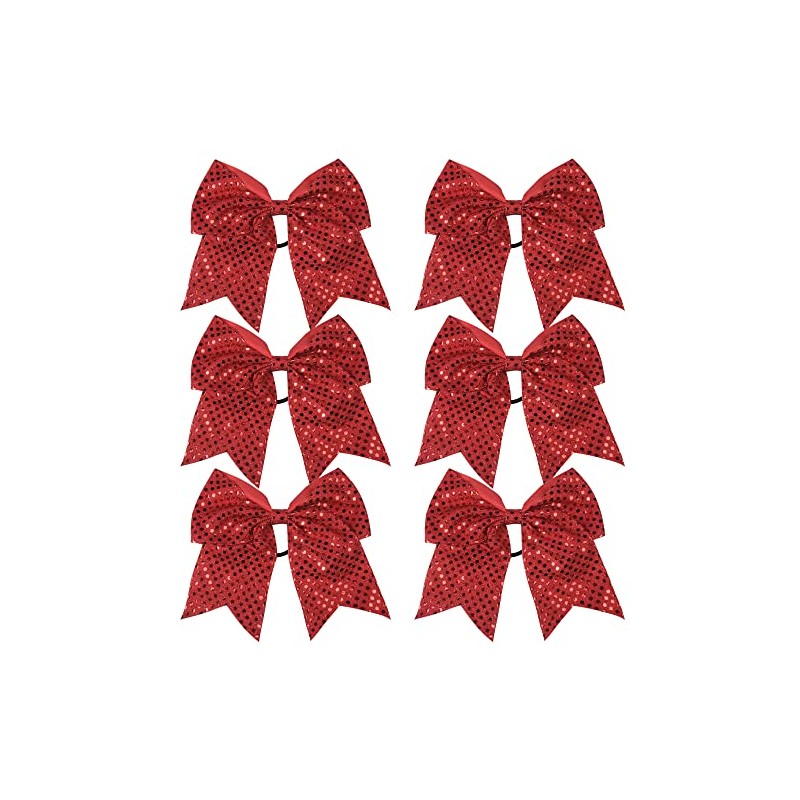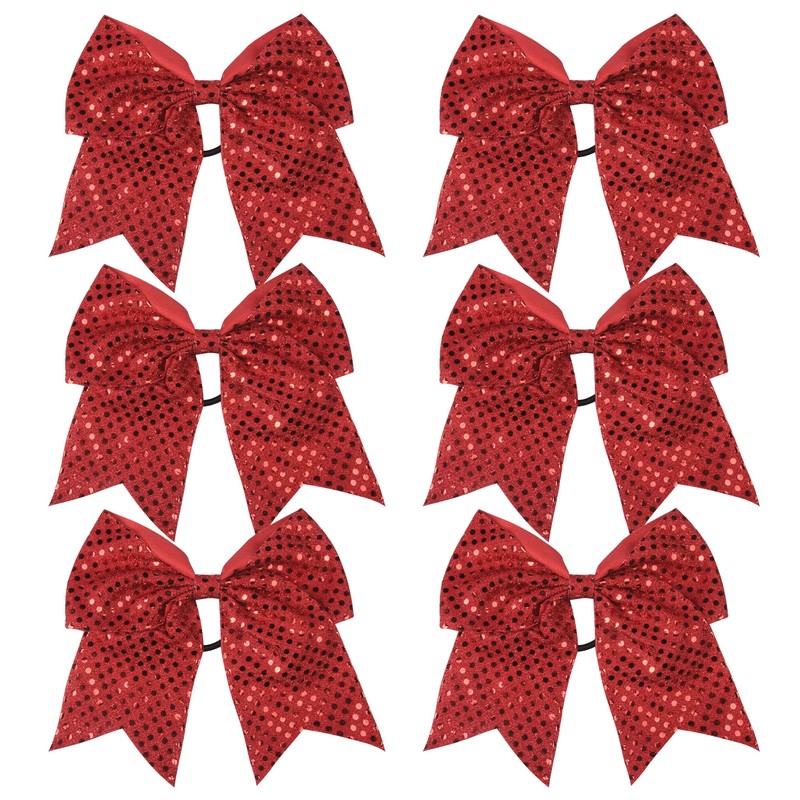8 Inch Cheer Bows Cheerleader Ponytail Holder with Bling Fling Sequin Hair Tie Cheerleading Bows 6 Pcs (Red)