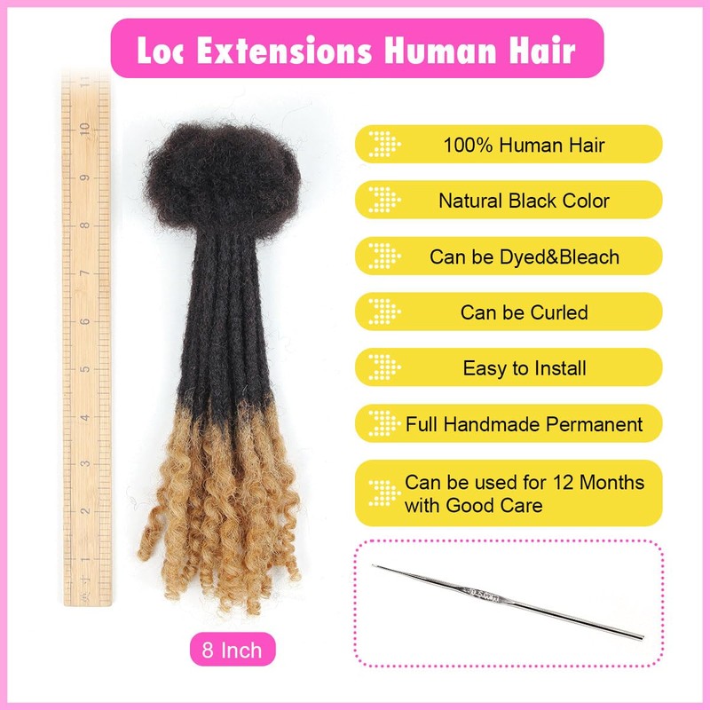 8 inch Loc Extensions Human Hair with Curly Ends, 0.4cm Width Permanent Dreadlock Extension Human Hair 20 Strands 1B27 100% Full Handmade Dreads .Dyed and Bleached Pre Curled Drealocks