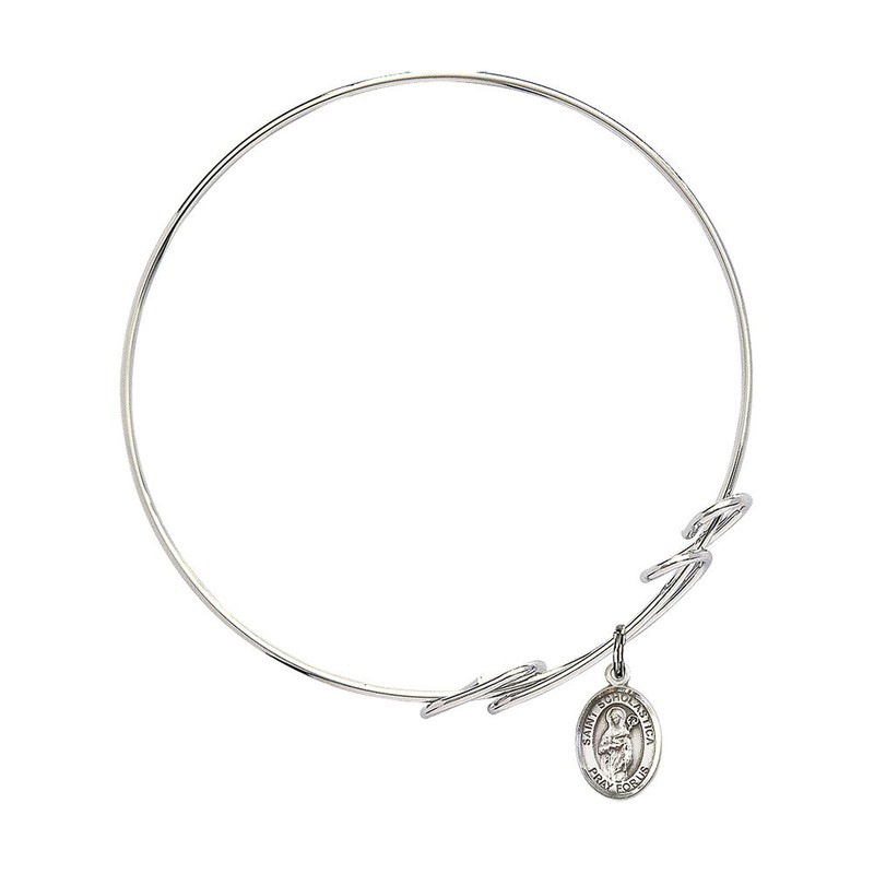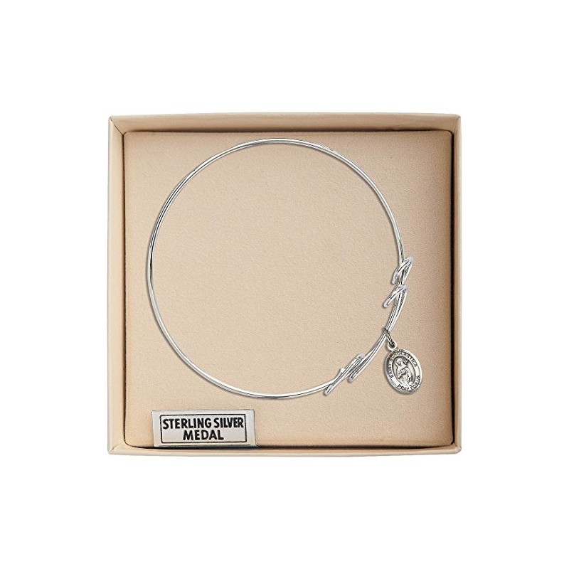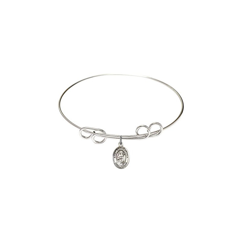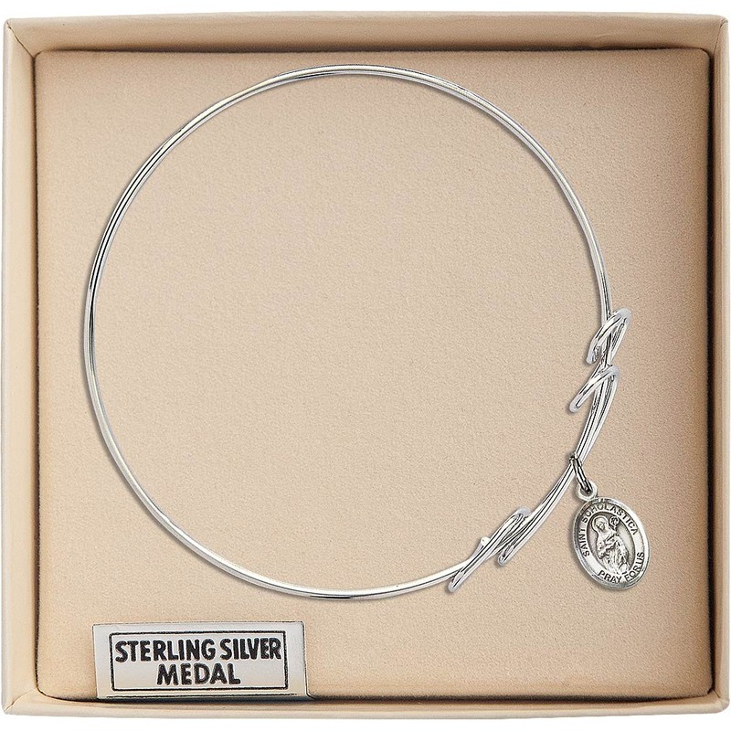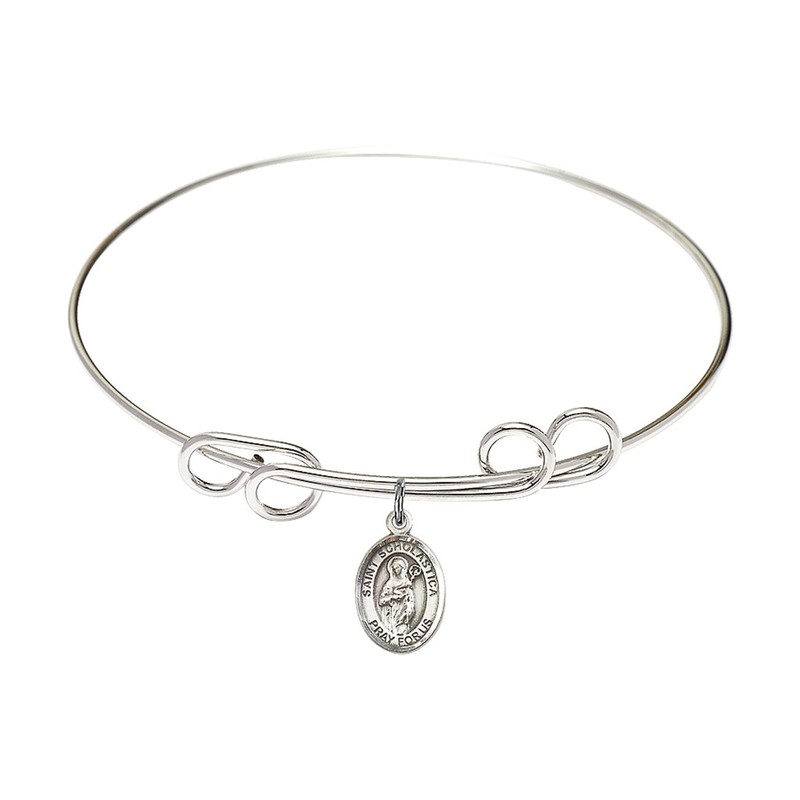 8 inch Round Double Loop Bangle Bracelet w/St. Scholastica in Sterling Silver