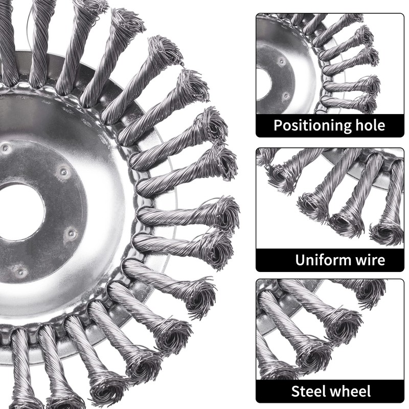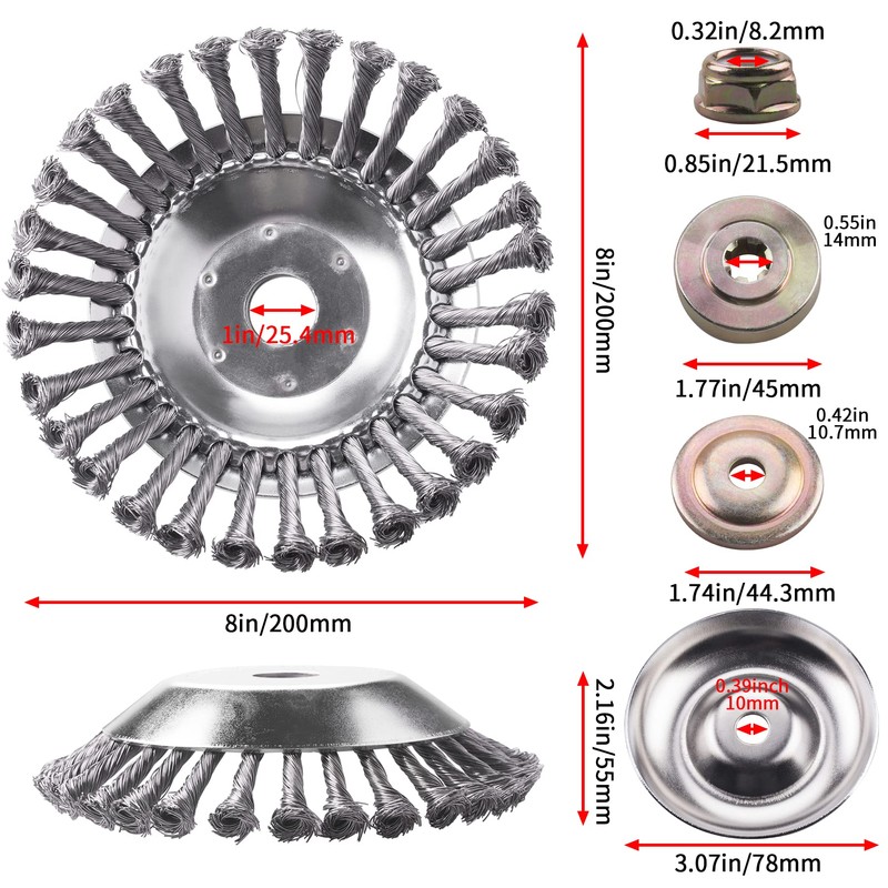 8 Inch Steel Wire Rotary Brush Cutter Trimmer Head Weed Blade Cutter with Adapter Kit Compatible with Husqvarna, Stihl, String Trimmers, Gardening Lawnmower, Moss Grass Rust Removal