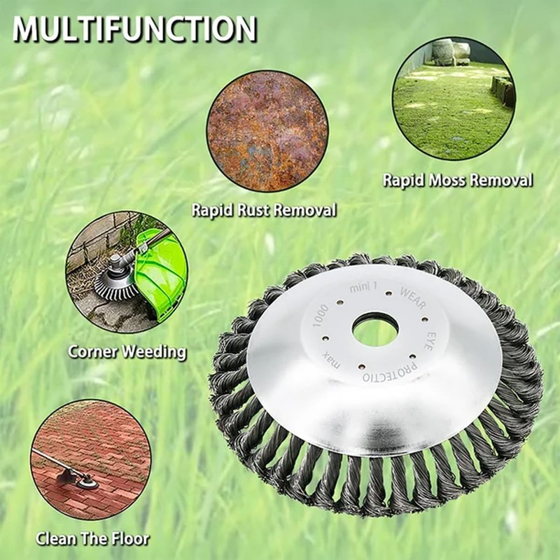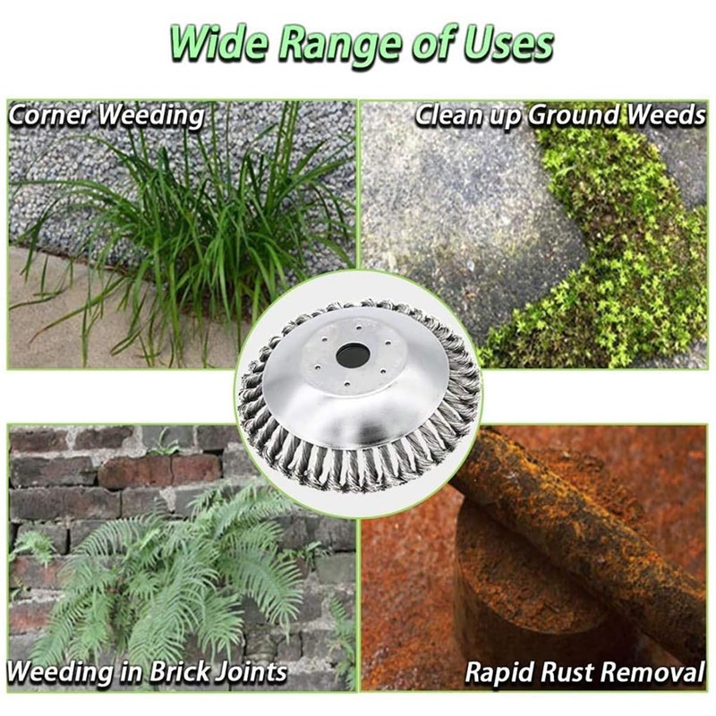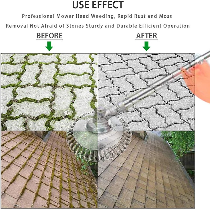 - Application: Rounded edges of straight shaft garden rod products, especially suitable for mowing or rust removal. Do not damage vases, trees, garden furniture, etc. This wire brush is mainly used for excavation, dust removal, oxide removal, cleaning and polishing accessories, and coating.