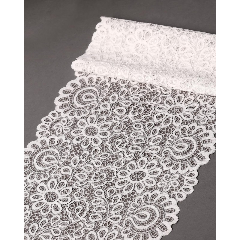 - Package comes with 1 roll of Off-White stretch lace ribbon, 5 yards long and 8 inches wide