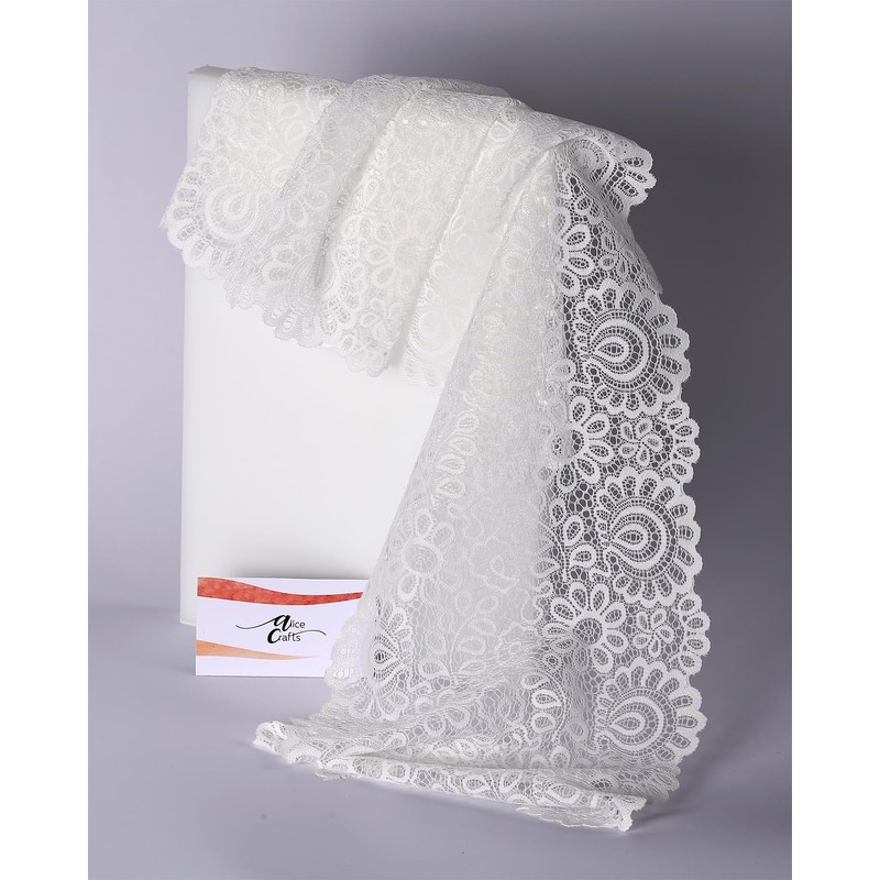 8 Inches by 5 Yards Stretch Sewing Lace Trim Fabric Elastic Ribbon Continuous Roll by Alice Crafts | Off-White