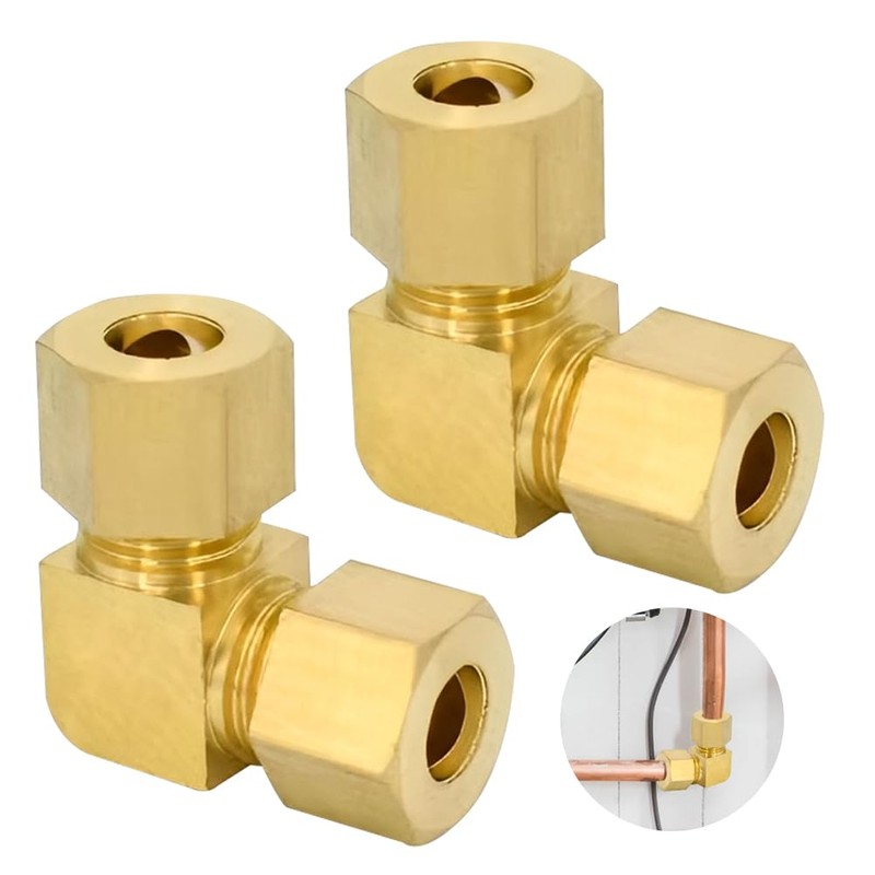 8 mm Angle Compression Fitting, Brass Compression Pipe Fitting, Pneumatic Compression Fitting, Can be Used for Pipe Diameter Outer: 8 mm, Pack of 2