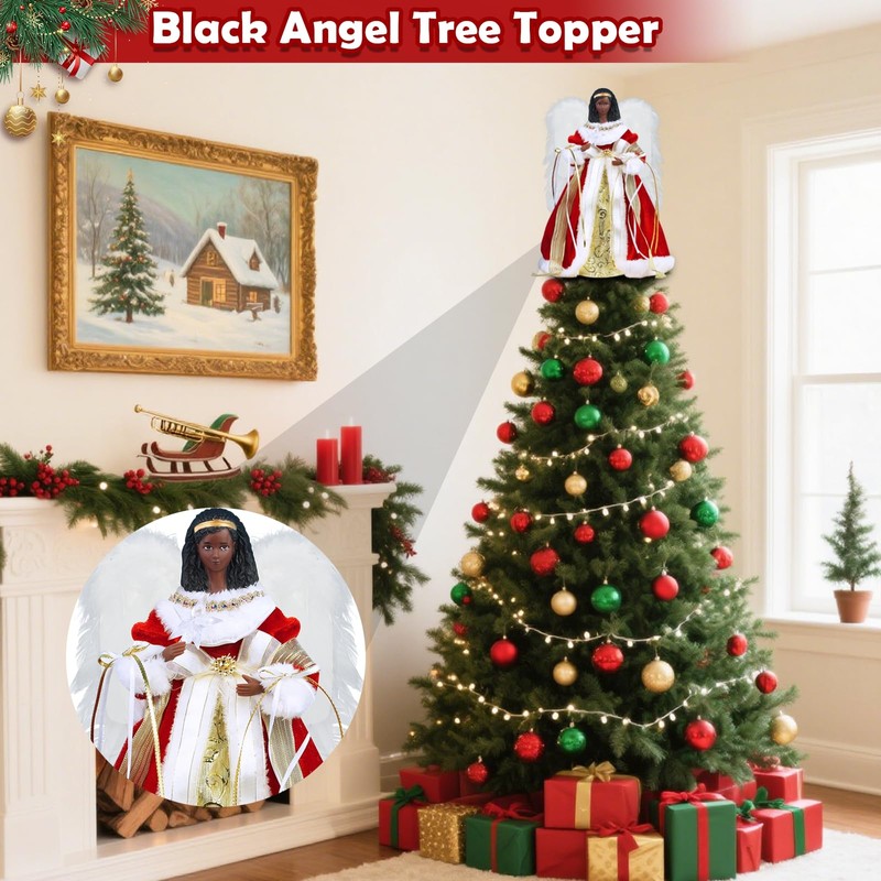 • Exquisite Design: Christmas angel tree topper features exquisite details, with a shimmering gold gown, cascading ribbons, delicate face, feather wings, and glowing star; Its dark color scheme add modern, novel twist, standing out among traditional toppers