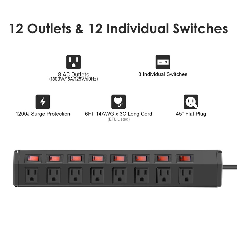 - Convenient Individual Switches: With 8 individual switches, no more hassle of plugging and unplugging devices. Turn on or off the equipment independently. Save energy and money.