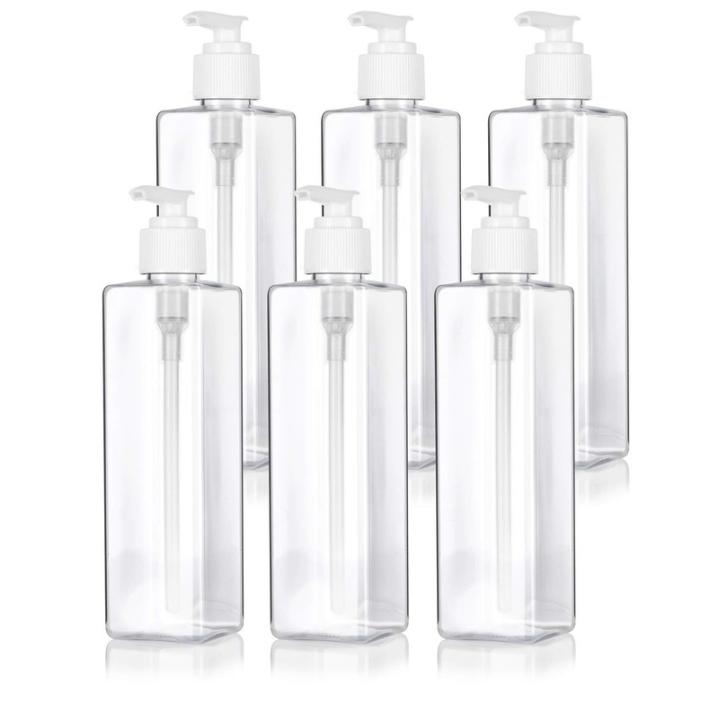 8 oz / 250 ml Clear Plastic PET Square Bottle (BPA Free) with White Lotion Pump (6 Pack)