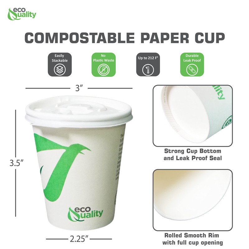 - CONVENIENCE: Our 8oz coffee cups with rolled rims are made for comfortable drinking. Can be used with any hot or cold drinks and make great for serving coffee, tea, espresso and hot chocolate. Disposable compostable cups can then be thrown directly into your compost bin after each use saving time and cleaning!