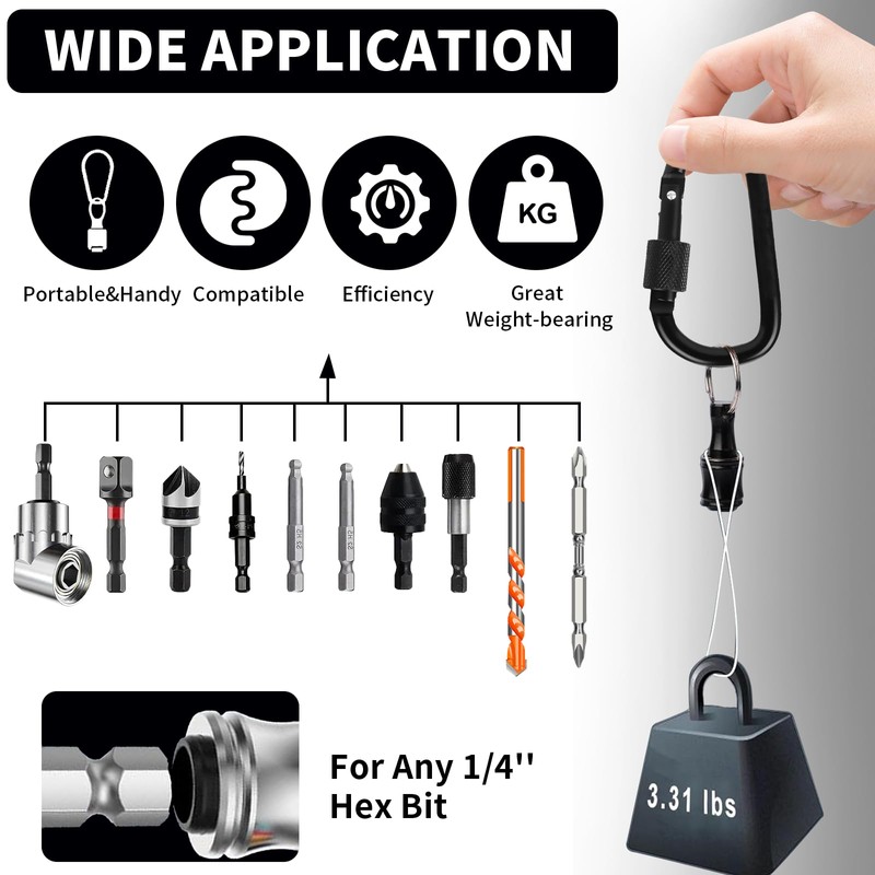 • 【High Quality】 The design of the ball claw on the drill bit bracket allows it to quickly connect and release, firmly fixing the drill bit hold in place, and its surface is smooth and not easily faded; The black metal buckle can support a weight of up to 3.31 pounds/1.5kg, preventing the drill bit from falling off. It is very safe and can be used with peace of mind, greatly improving your work efficiency.