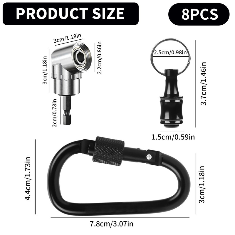 8 Pack 1/4 Inch Hex Bit Holder Keychain, Shank Screwdriver Bits Holder with 105° Right Angle Drill, Extension Quick Change Lightweight Portable Drill Bit Organizer for DIY, Electrical, Woodworking