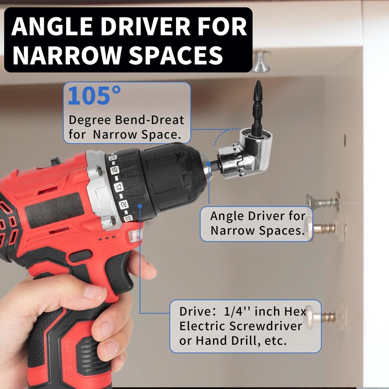 • 【105 ° Drill Bit Driver】 It made of corrosion-resistant high-quality metal materials, durable, with a rotatable head, high-speed performance, and versatility, it can reach difficult to operate areas such as drilling and screw drive, making it the best choice for use in narrow spaces.