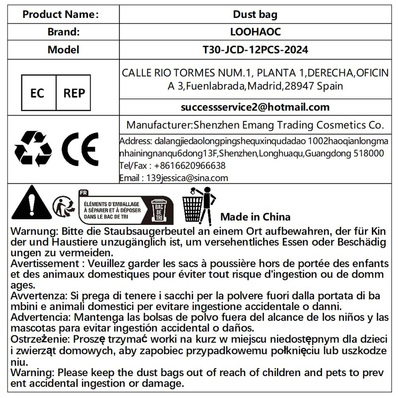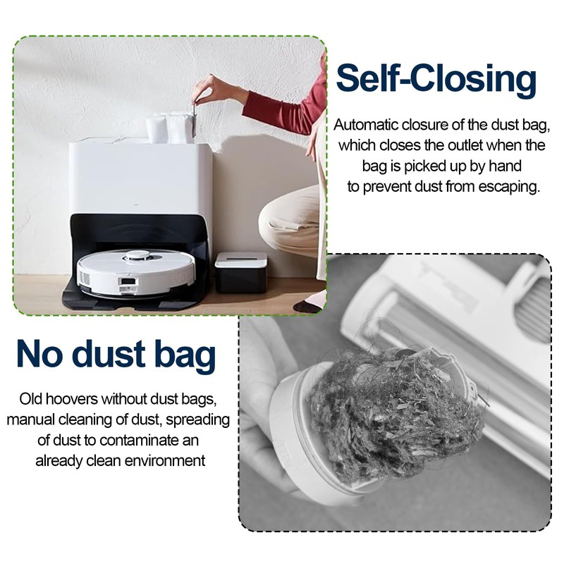 - ✅ Efficient filtration system: The dust bags consist of a pre-separation dust deposition layer, a micro-filtration layer and an antimicrobial protective layer, which ensures effective filtration of more than 99% of fine dust particles.