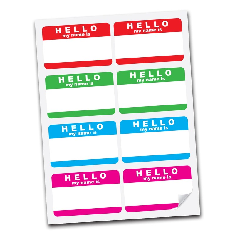 (8 Pack) Hello My Name is Stickers - 4 Colours - 70 x 44mm