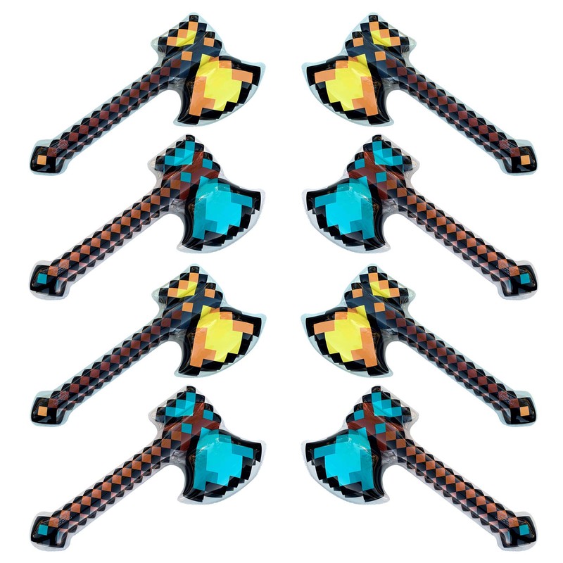 8 Pack - Inflatable Jumbo Hatchets mine pixel craft (4 Yellow, 4 Blue) diamond axe by Inflatable Army®