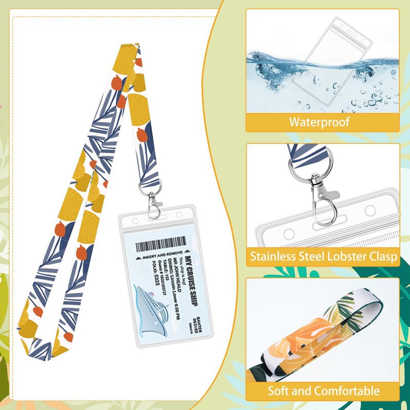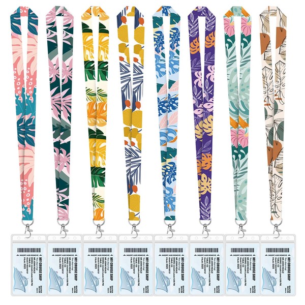 8 Pack Lanyards for Cruise Cards, Ship Essentials for ID Badges & Key Cards (Rainforest Style 3)
