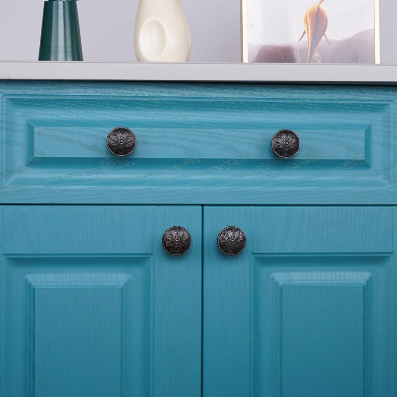 - Oil Rubbed Bronze Look & Zinc Alloy : The round cabinet knobs are made of 100% high quality solid zinc alloy die-casting and bronze with a nice oil rubbed color to the flower. elegant and durable, it has strong corrosion resistance, wear resistance, no fading and no rust.