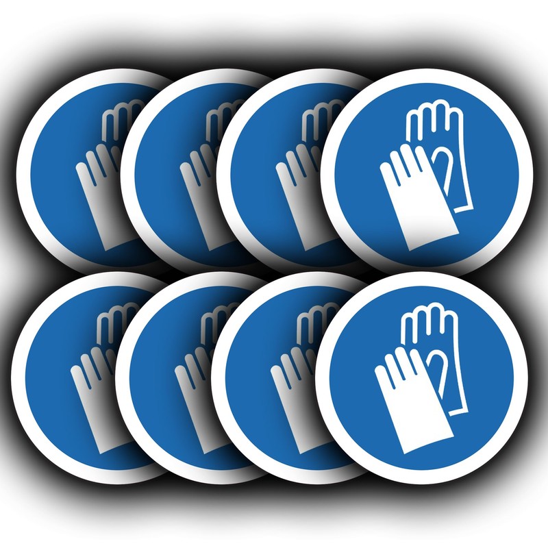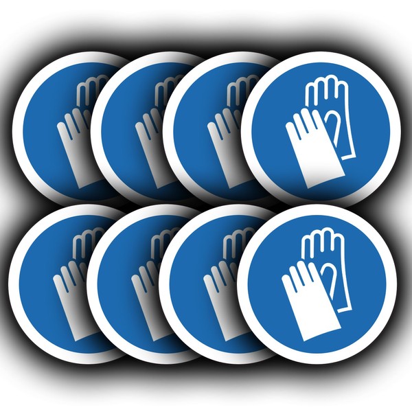 8 Pack - Protective Gloves Must Be Worn Stickers - 85mm Hand Workplace Safety Vinyl Decals