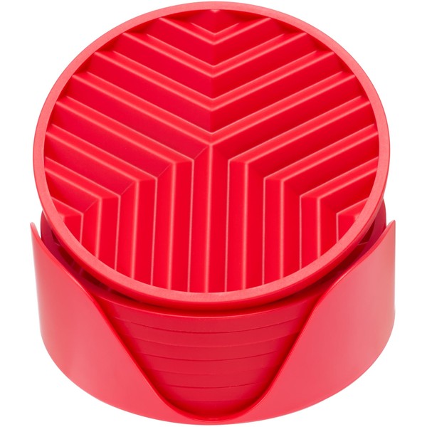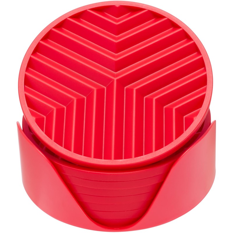 8-Pack Red Silicone Coasters with Holder, Non-Slip Rubber Coasters for Drinks, Heat-Resistant, Desk & Table Protector | Porta Vasos para Mesa
