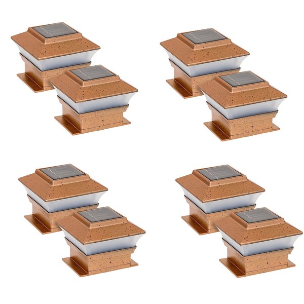 8 Pack Solar Powered Copper Outdoor Garden Deck Patio Fence Pathway Post Light (PL244A, Copper - 2 SMD LED)