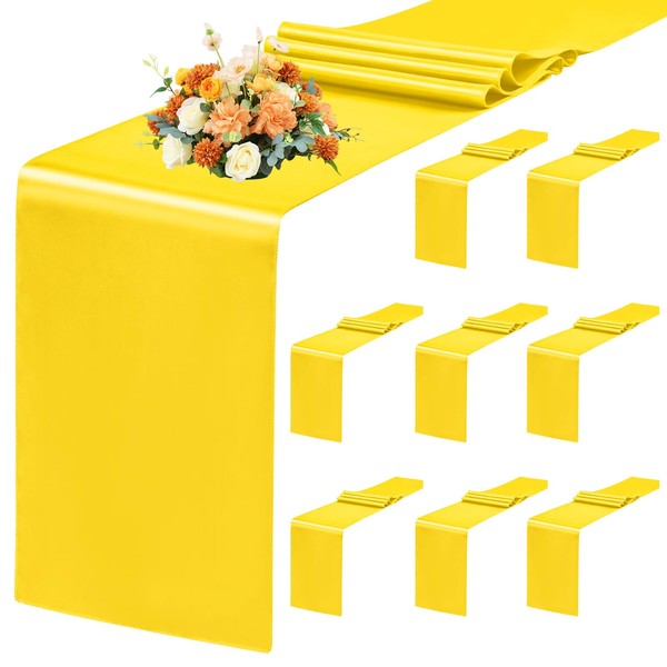 8 Pack Yellow Table Runner 12 x 72 Inch Satin Table Runner for Rectangle Round Tables,Yellow Table Runners for Wedding,Birthday Banquets Engagements Party Decoration