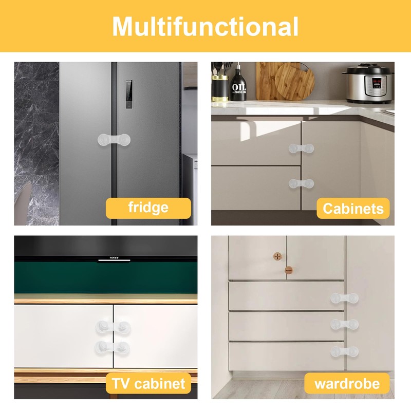 - Widely Used: Baby proofing lock can be installed on cabinet drawer closet pantry and refrigerators. Baby proof drawer lock can not only prevent children from touching dangerous items inside the door but also prevent dog and cats from making trouble.