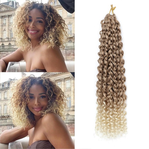 8 Packs GoGo Curl Crochet Hair 12 Inch Short Curly Crochet Hair for Women Beach Curl Water Wave Deep Twist Crochet Braids Synthetic Braiding Hair Extensions (T27/613#, 12 Inch(pack of 8))