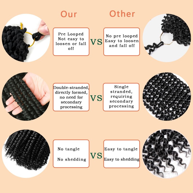 - 【Passion Twist Hair Advantages】: Passion twist braiding hair are pre-twisted and pre-looped crochet hair, light weight, no shedding, no tangling, no smell, durable and long lasting, easily to install . Especially for beginners, save a lot of time.