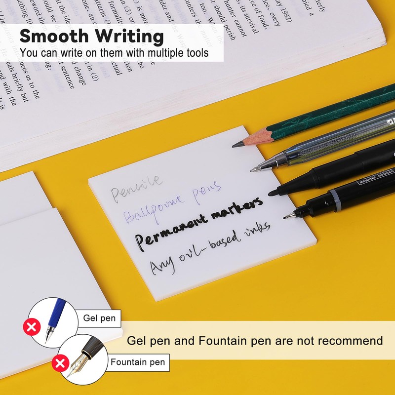 - Multi-Pen Type for Smooth Writing: Transparent sticky notes have a smooth writing experience. Suitable for ballpoint pens, pencils, permanent markers, oil-based pens, not recommended for fountain pens and gel pens