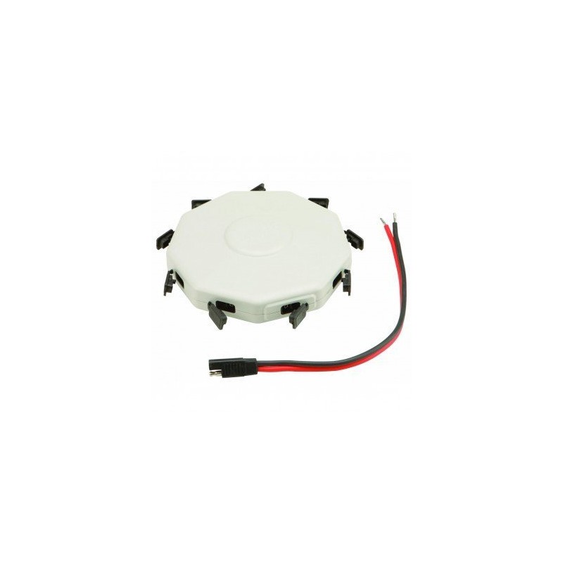 Connect as many as 8 solar panels or 45 watt kits to a single output. Handles output current up to 30 amps max, output wattage up to 400 watts max Overall dimensions: 7" L x 6-1/2" W x 1-3/4" H Weight: 1.24 lb.