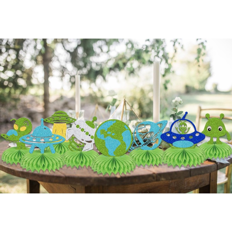 8 Pcs Alien Honeycomb Centerpieces - Alien Party Decorations - Space Birthday Decorations