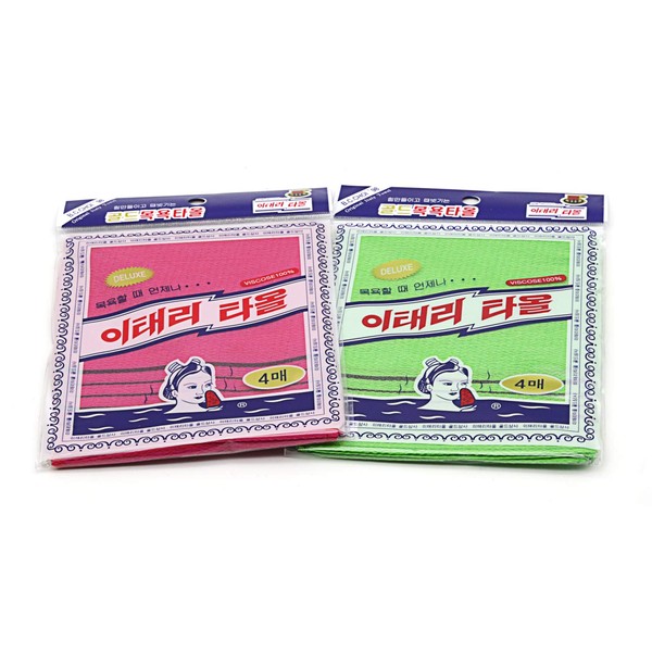 8 pcs Asian Exfoliating Bath Washcloth by KOREADIRECT - Red & Green