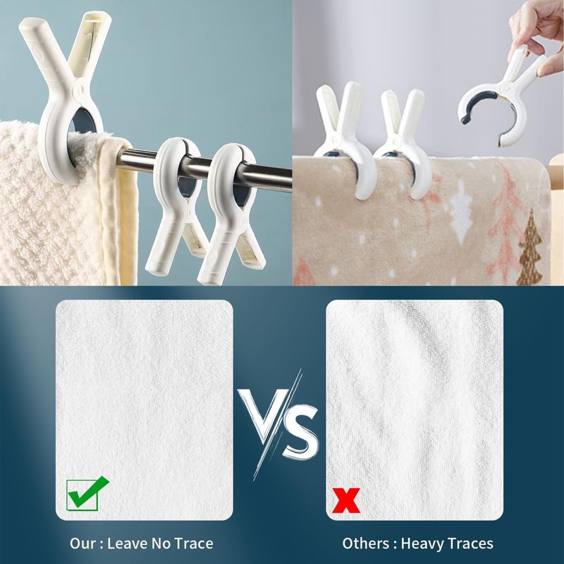 - 【Multifunctional Clip】Strong grip clothes peg can be to secure beach towels, wet swimsuits, quilts, shoes, sock and other clothes. And can also be used as a snack sealing clip, clean and hygienic.