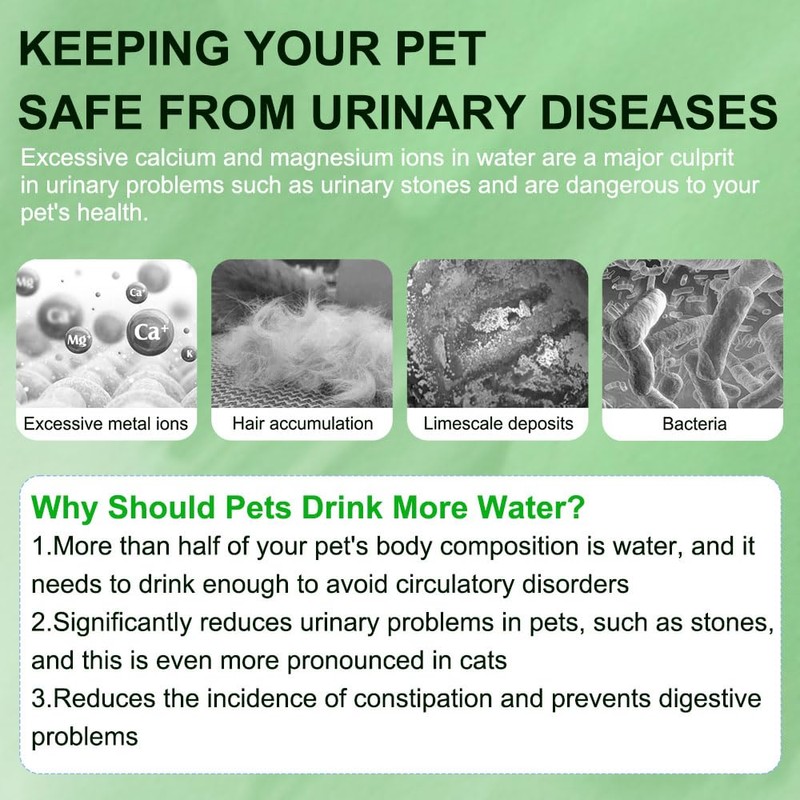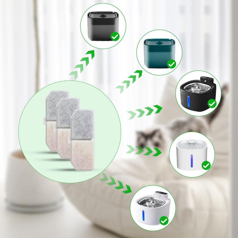 - 【TRIPLE FILTER SYSTEM】The cat fountain filter provides triple filtration to keep your pet's drinking water clean and fresh. This effectively filters pet hair, food residue, adsorbs odours and softens the water, providing your pet with fresh, healthy drinking water.