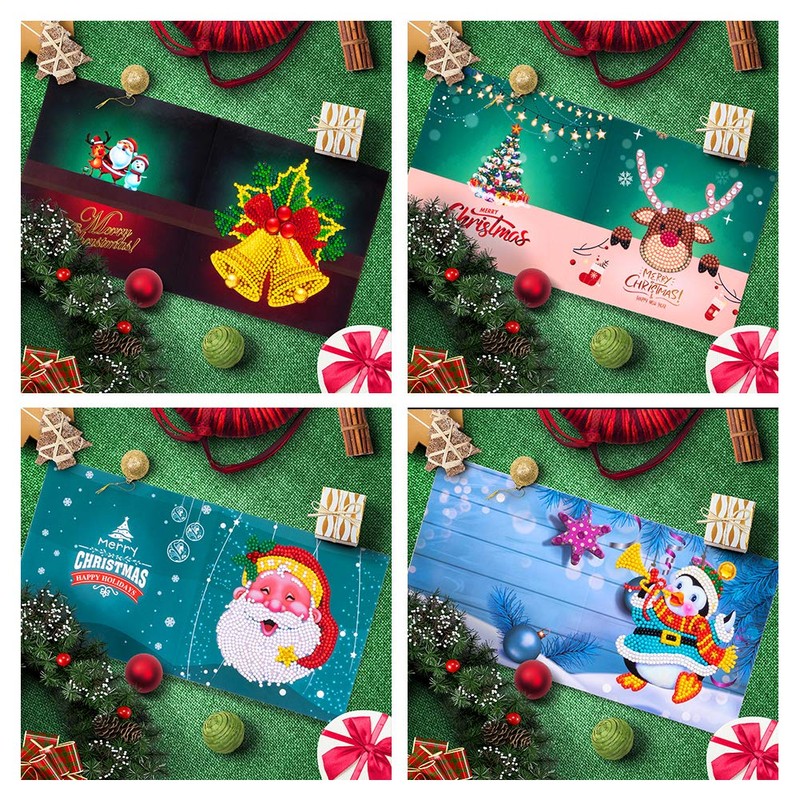 - ¡¾Xmas Diamond Painting Greeting Cards¡¿Incluiding 8 pieces diamond painting greeting cards, 8 different pattern design: santa claus, snowmen, reindeer, Christmas bells etc., the quantity can full meet your daily needs.