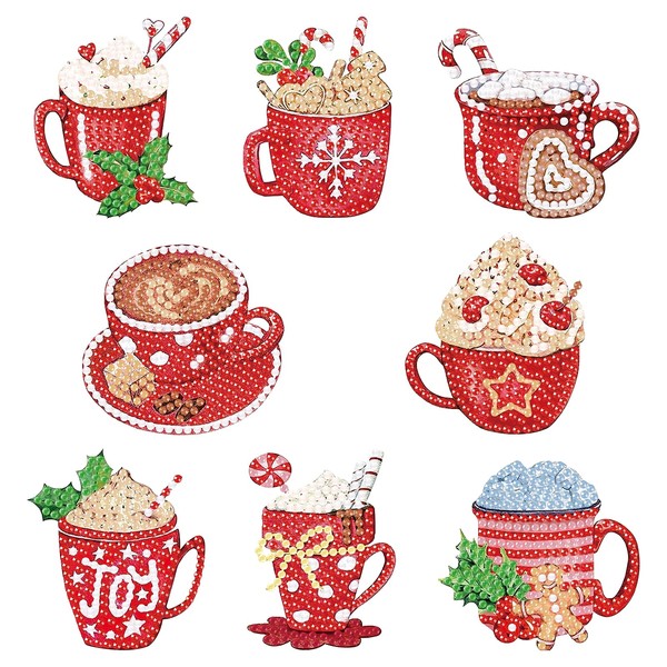 8 Pcs Christmas DIY Diamond Painting Keychain,5D Double Sided Full Drill Diamond Keyrings,Xmas Teacup Shaped Diamond Art Craft Kits Key Rings for Kids Adults,Key Pendant for Purse Phone Bag Decor