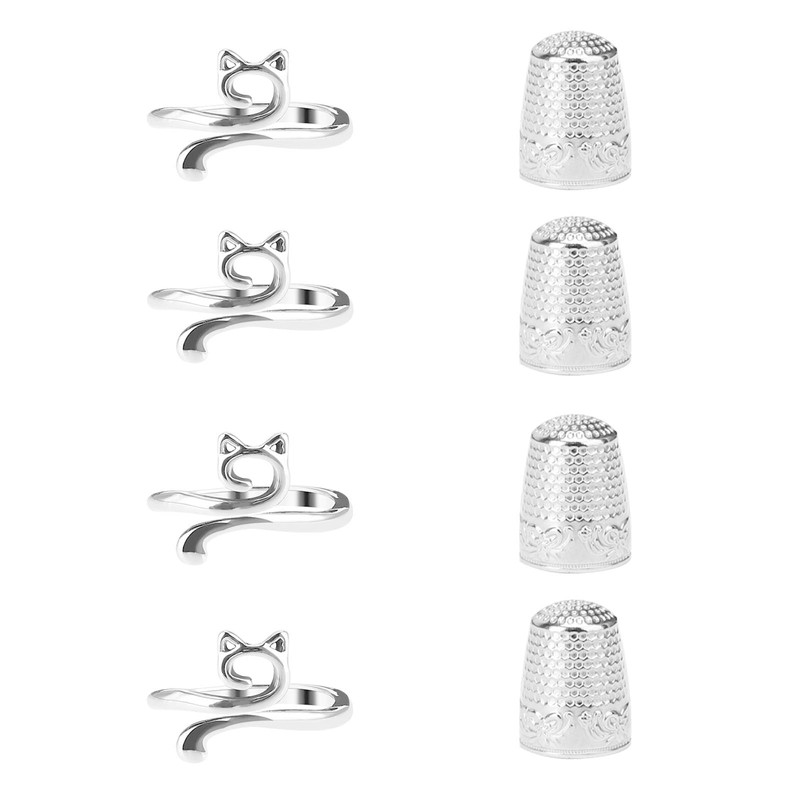 8 Pcs Crochet Accessories Include 4 Cat-Shaped Crochet Rings for Fingers UK and 4 Thimbles for Hand Sewing, Finger Protectors, Thimble and Crochet Ring for Faster DIY Crafting