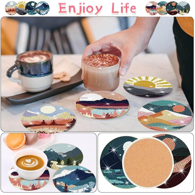- Practical Gifts: These diamond art coasters with holder are ideal to and serve as kitchen, dining tables and desk decorations, and also is applicable to coasters for most coffee cups and glasses at home, stores, cars, office and more.