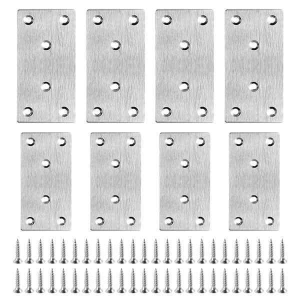 8 Pcs Flat Brackets for Wood, Heavy Duty Flat Joining Plates, Sleeper Brackets Stainless Steel, Metal Mending Plates for Wood with Screws for Board Joint Fixing (80 x 40 x 1.5mm + 100 x 50 x 1.5mm)