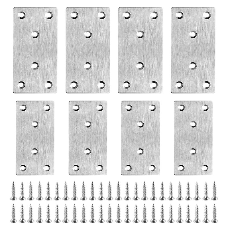 8 Pcs Flat Brackets for Wood, Heavy Duty Flat Joining Plates, Sleeper Brackets Stainless Steel, Metal Mending Plates for Wood with Screws for Board Joint Fixing (80 x 40 x 1.5mm + 100 x 50 x 1.5mm)