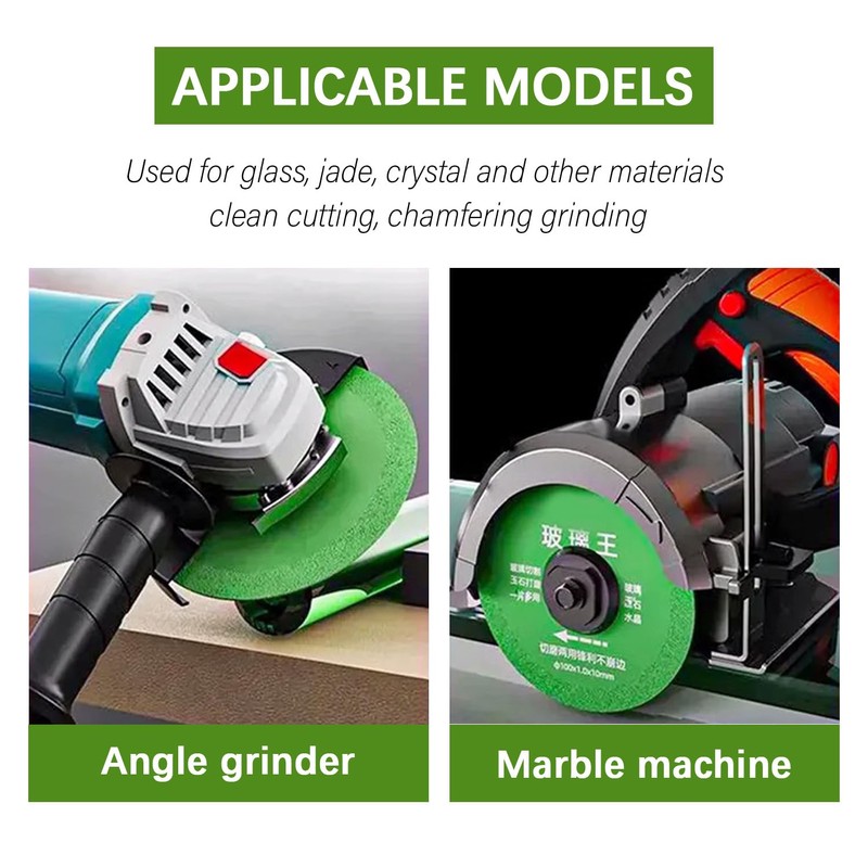 - Multipurpose: This glass ceramic cutting disc is suitable for 4 - inch angle grinders with an inner diameter of 0.78 inches. It can be used for glass processing, smooth cutting, beveling, and grinding of glass; home decoration ceramics and tiles; jade, crystal, bottles; as well as architectural decorations.