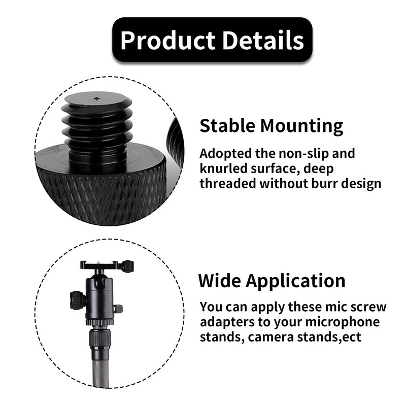 • Versatile Compatibility: Designed to fit a wide range of equipment, these universal screw adapters seamlessly connect microphones, cameras, tripods, and DJ gear, eliminating the need for multiple converters.