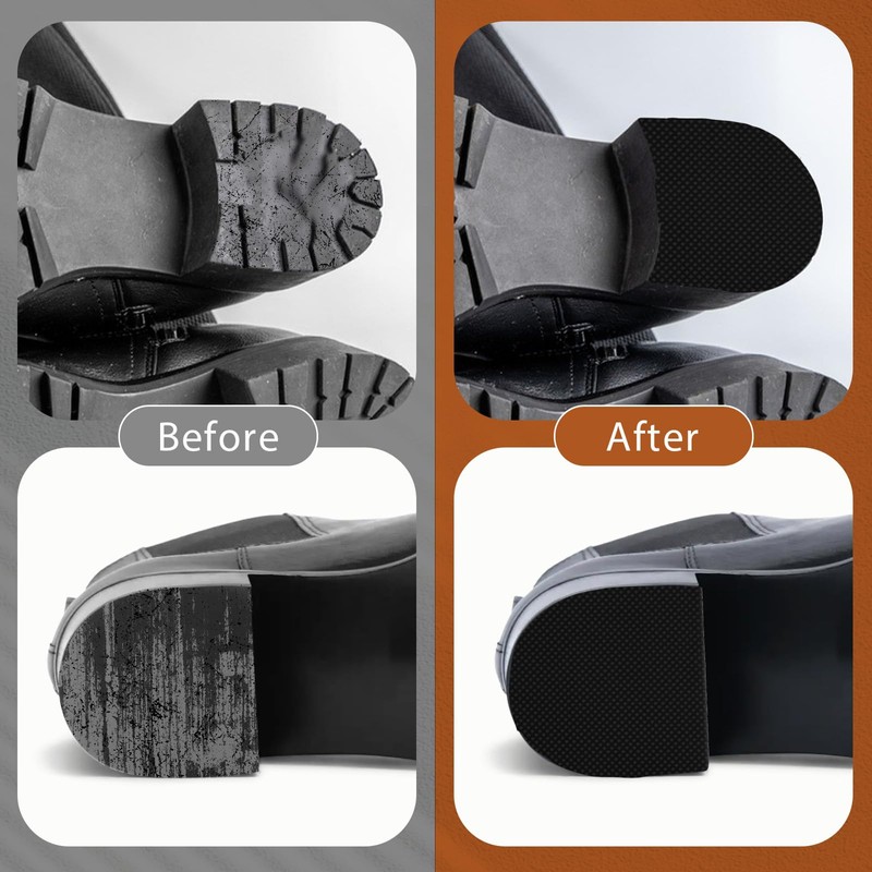 - Wide range of uses: These rubber boot heel patches are suitable for women's boots and high-heeled sandals. They can be used to repair worn heels, protect the soles from damage, and extend the service life of shoes.
