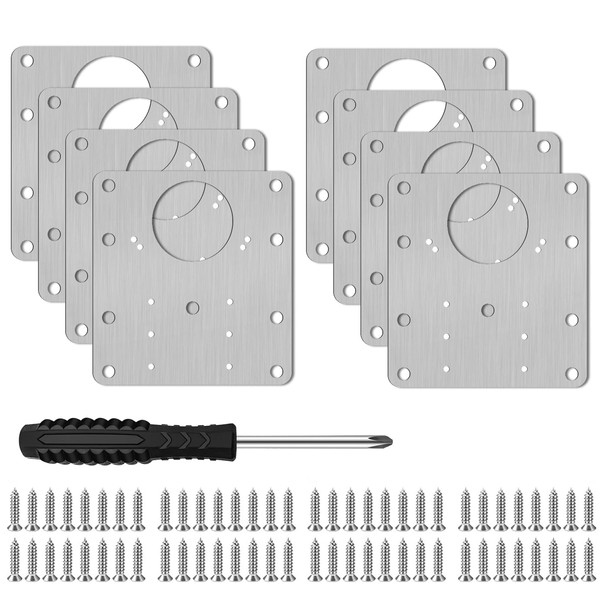 8 pcs Hinge Repair Plate Kit for Cabinet Door Hinge Repair Fixing Plate Stainless Steel Board Cabinet Hinge Reinforcement Repair Plate kit(8pcs+64 Screws+1pcs Screwdriver)