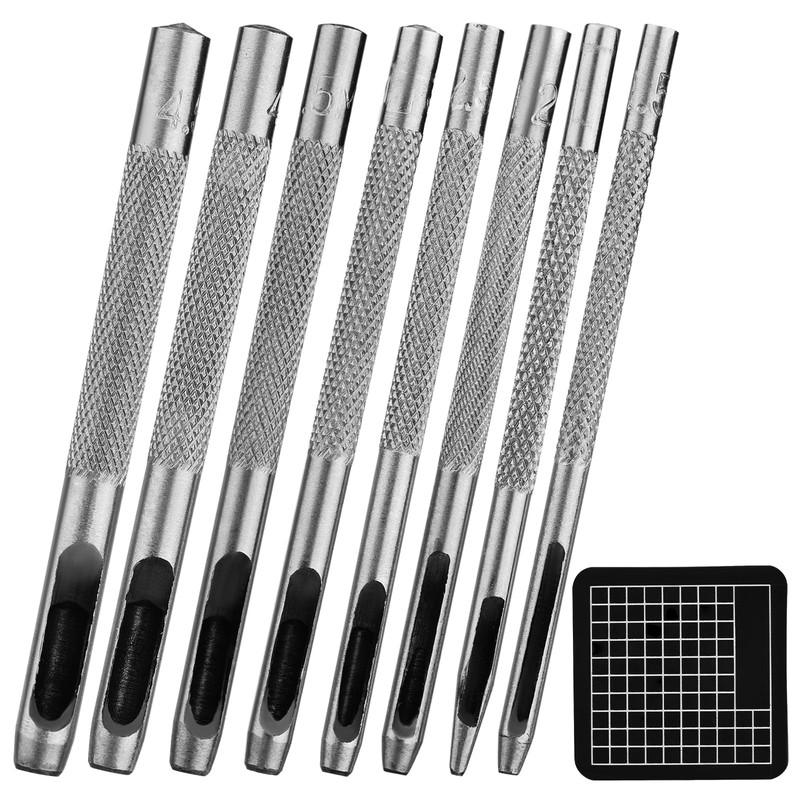 - LEATHER PUNCH SET:8-piece Hollow punches with different size:1mm,1.5mm,2mm,2.5mm,3mm,3.5mm,4mm,4.5mm,and a anti-slip mats.