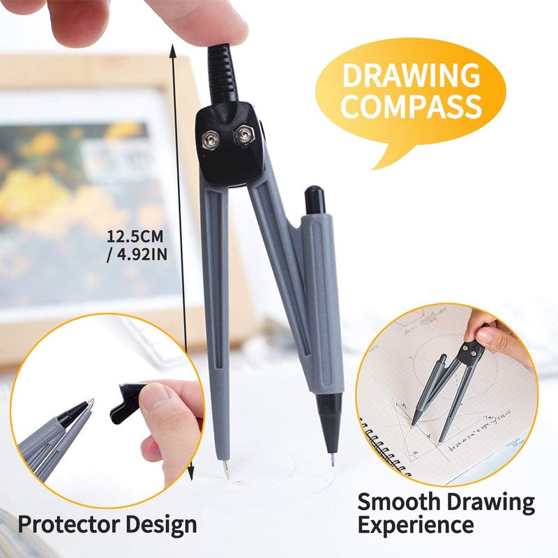 - ☛ MATHS COMPASS: The school compass draw up to a 10" diameter circle. The drawing compass has sharp parts: Please use it carefully and place it where the baby can't touch it.