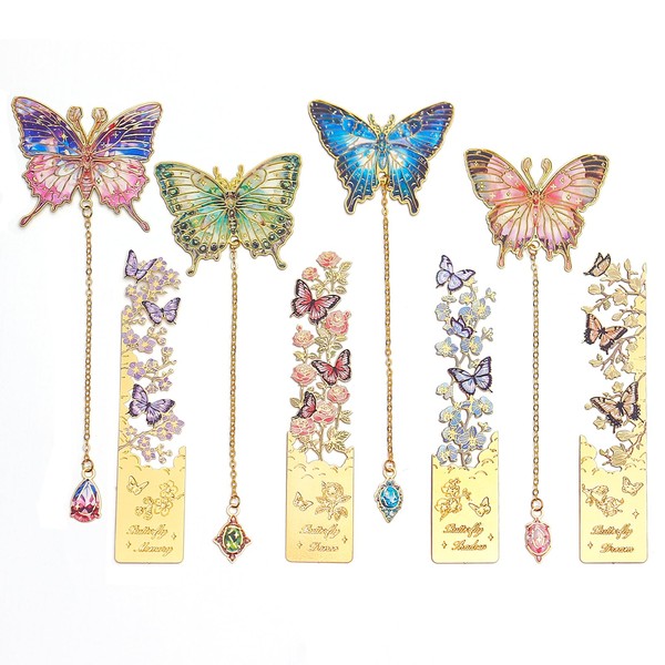 8 PCS Metal Bookmarks for Reading Women, Butterfly Flower Theme Cute Book Marks for Kids, Teens,Writers,Men Readers, Reading Accessories for Book Lovers