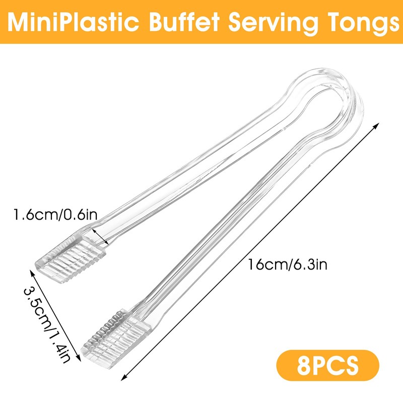 - Careful Design: Small tongs features a thoughtful saw tooth design at the tips for firm food grip, preventing items from falling. The transparent, beautiful plastic serving utensils adds elegance to any buffet table or party setup